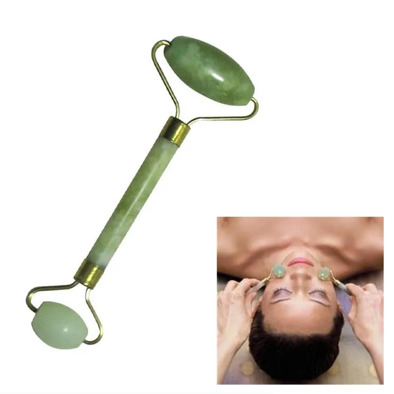 Limited Chance for Double Head Green Jade Roller Elliptical Massager Eye Face Neck Facial Slimming Thin face Beauty He