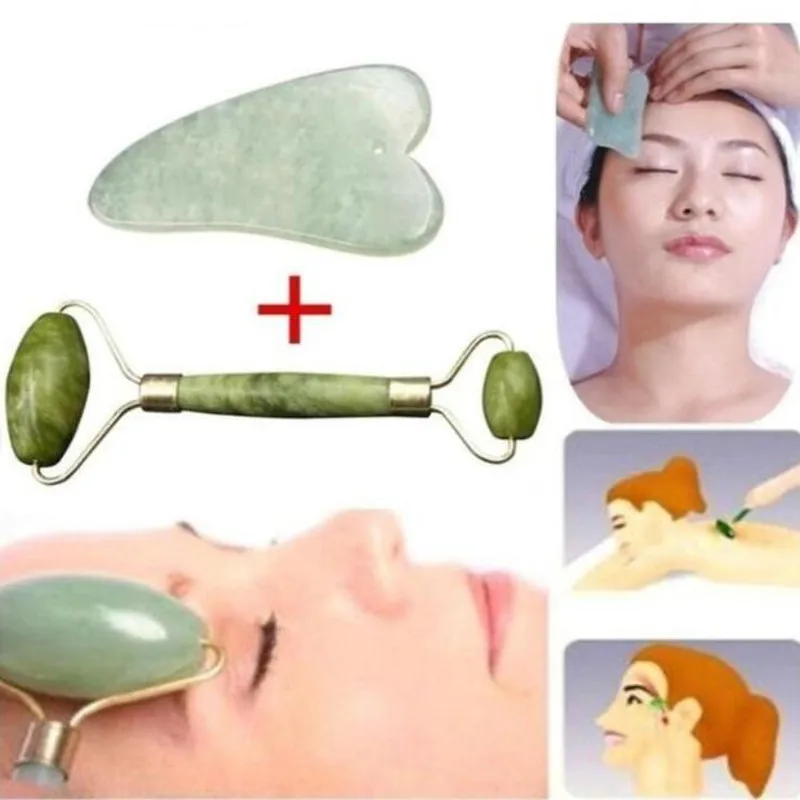 .image of Double Head Green Jade Roller Elliptical Massager Eye Face Neck Facial Slimming Thin face Beauty He